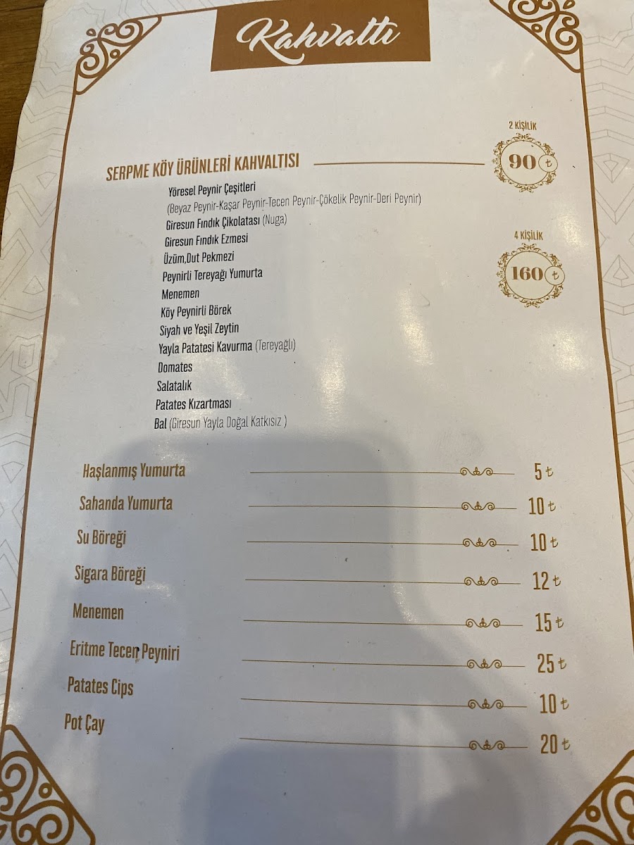 Giresun Belediyesi Sosyal Tesisleri Kale Menu